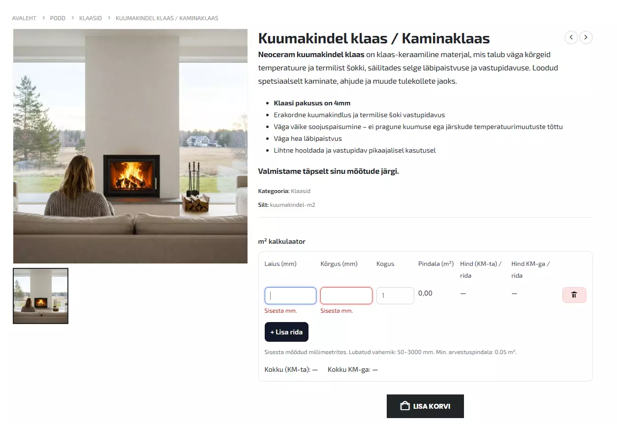 NB! Klaasi tellimine oma mõõtude järgi pole kunagi olnud lihtsam – tee seda otse meie e-poes ja saata see endale sobivasse Omniva pakiautomaati!